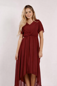 שמלת קשירה באורך משתנה , בצבע בורדו